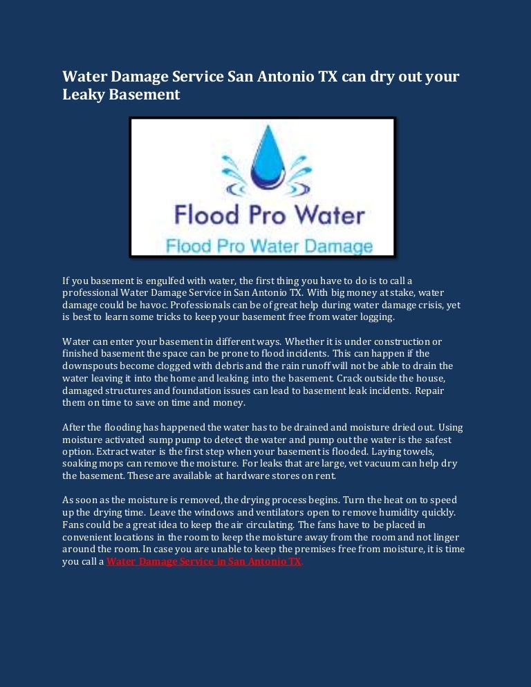 Water Damage Service San Antonio Tx Can Dry Out Your Leaky