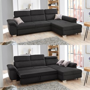 Ecksofa Landshut L Sofa Stoff Dunkelgrau Schlaffunktion