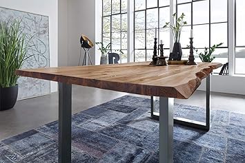 Esstisch Baumkante 120 X 80 Cm Akazie Natur Tischbeine Silber Neu