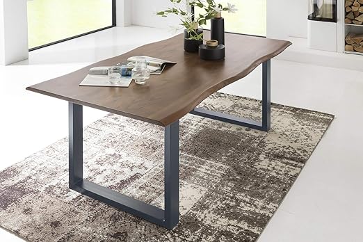 Esstisch Baumkante Akazie Braun 25mm U Gestell Antik Grau 160cm