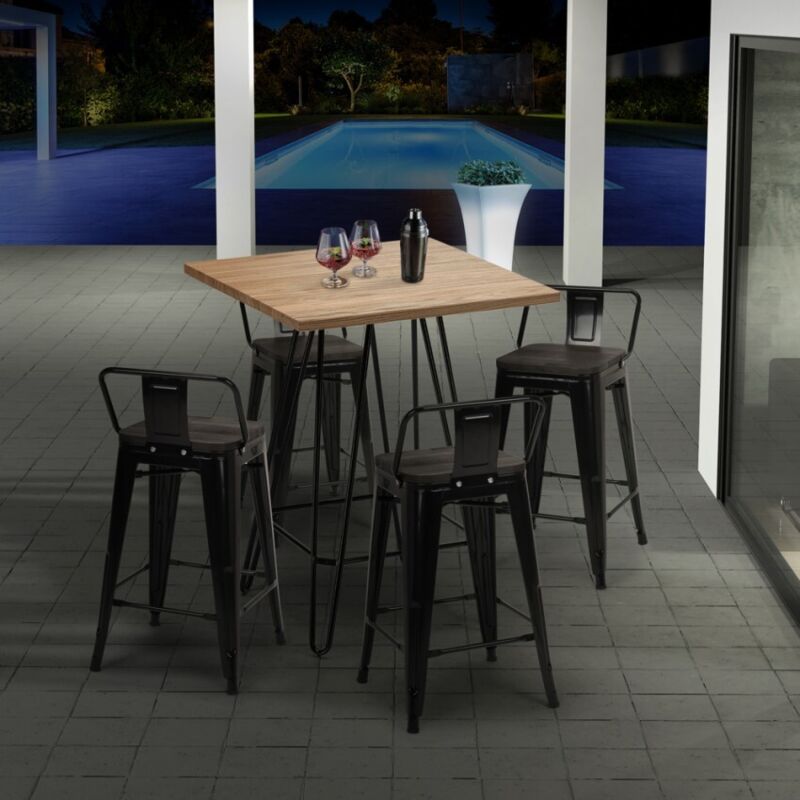 Bolt Hoher Tisch Metall Stahlrahmen Holzplatte Industrie Stil 60x60 Bars Esszimmer Farbe Beige Ta6060105mlmc