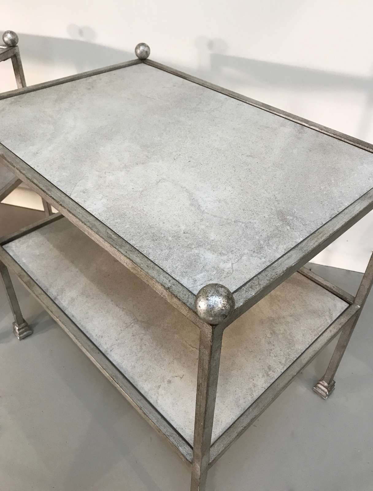 Pair Of Mary Two Tier Iron Side Tables With Faux Marble Ceramic
