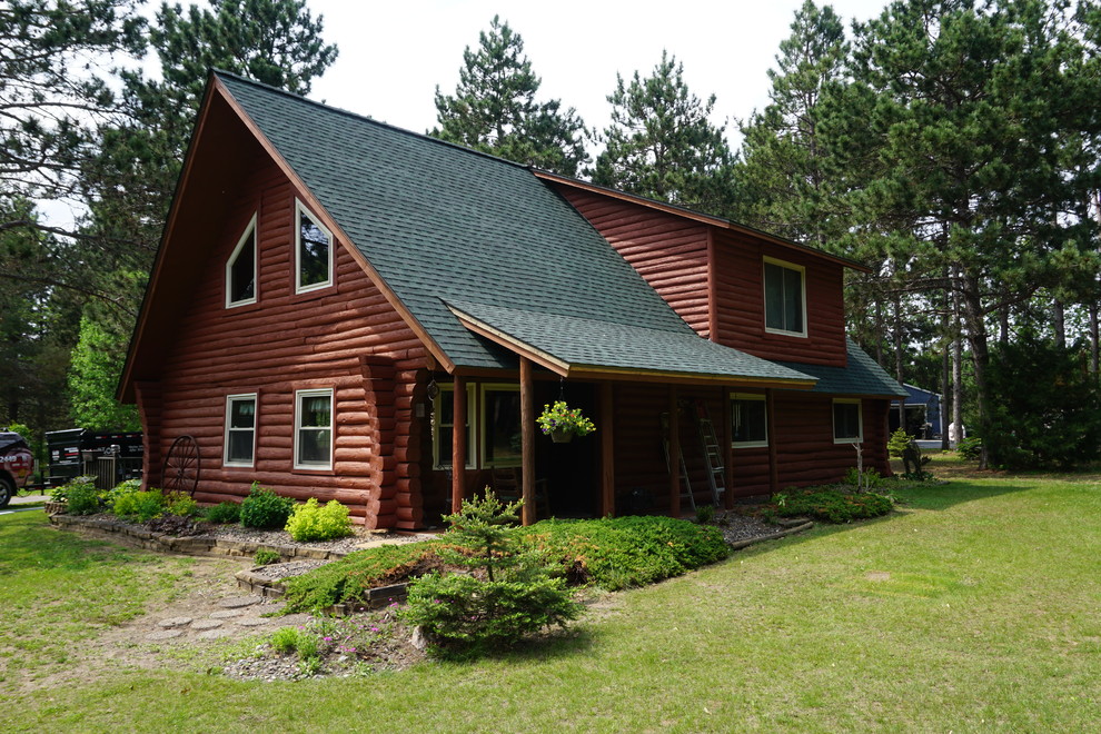 Gaf Timberline Hd Shingles Hunter Green On Red Log House