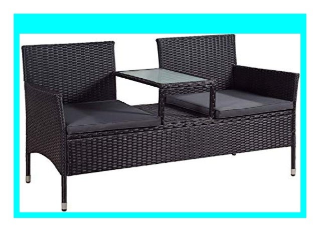 Gartenbank 2 Sitzer Mit Tisch Poly Rattan Schwarz Gartenbank