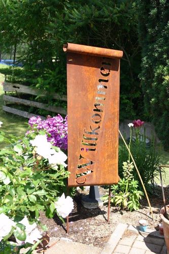 Edelrost Schild Willkommen Schriftrolle Gartendeko Metall Rost