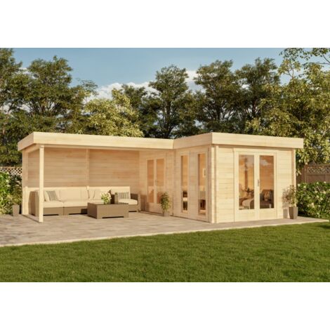 Gartenhaus Relaxhaus 590x301 Flachdach Holzhaus Mit Seitlichem