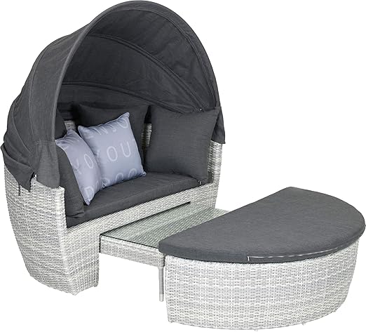 Sonneninsel Tisch Rattan Polyrattan Gartenmuschel Sonnenliege
