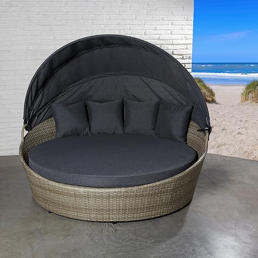 Polyrattan Sonneninsel Cancun Anthrazit Sonnenliege Gartenmuschel