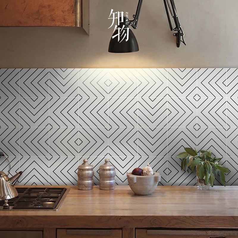 Nordic Modern Simple Black And White Tile 300 Geometric Line