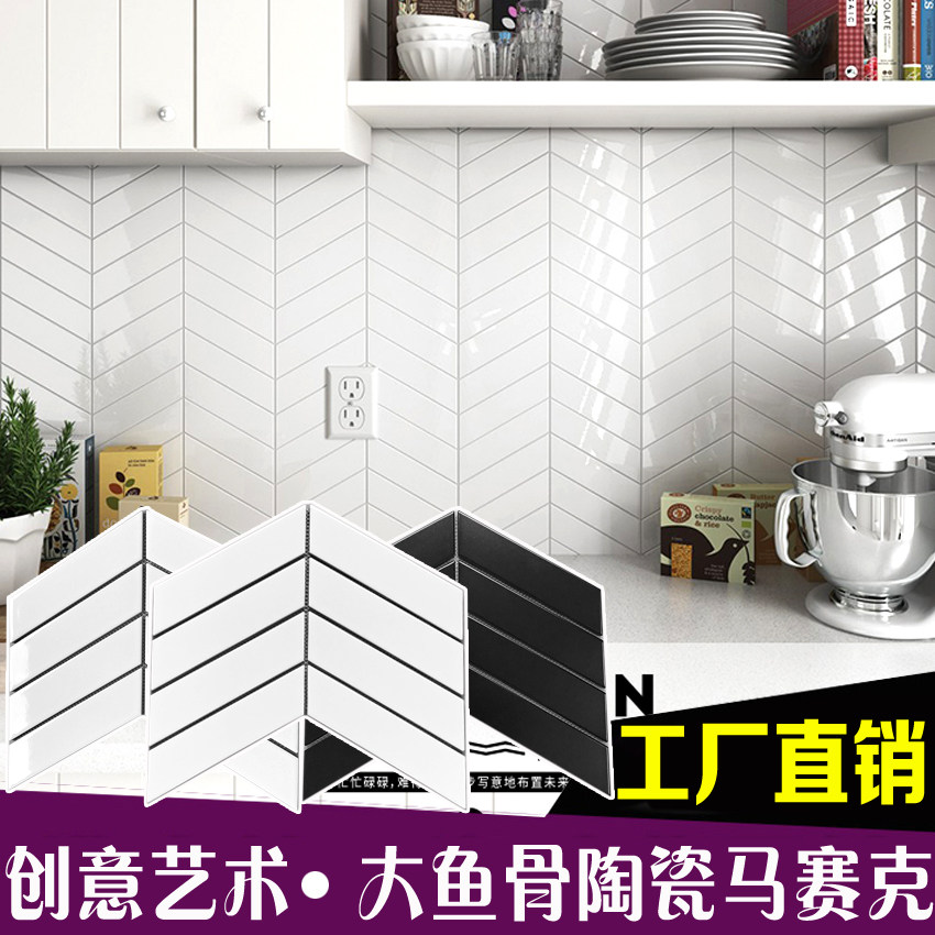 Nordic Fishbone Ceramic Mosaic Magnetic Tile Creative Art Black