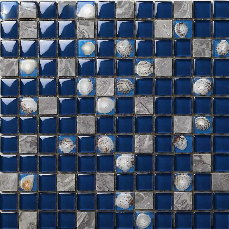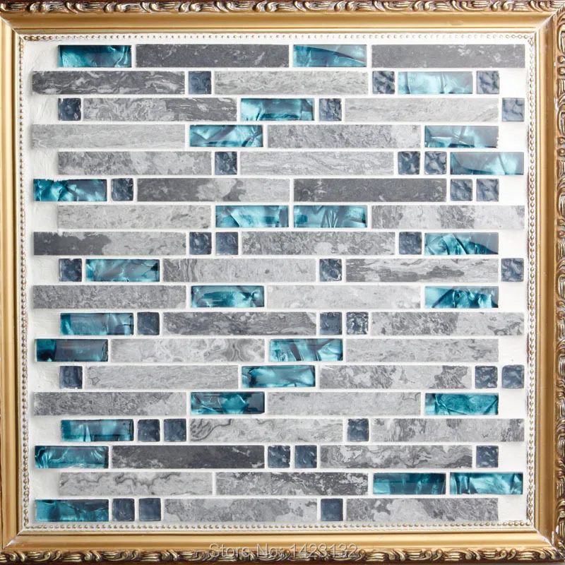 Blue Glass Stone Mosaic Wall Tiles Gray Marble Tile Kitchen