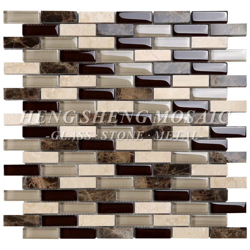 Brick Strip Interlocking Stone Glass Mosaic Tile Backsplash For