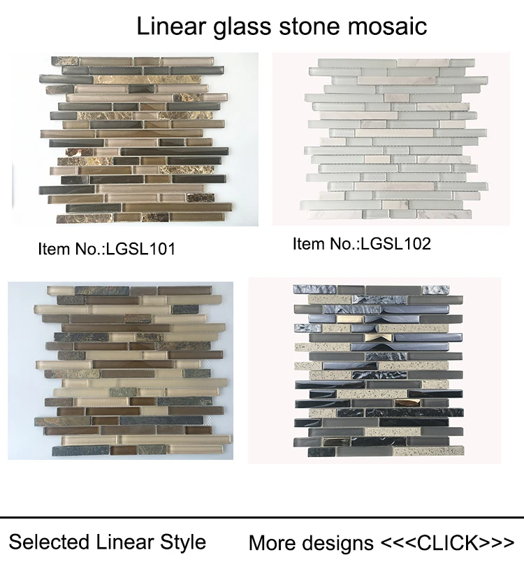 Glass And Stone Blend Linear Mosaics Backsplash Lint Tile