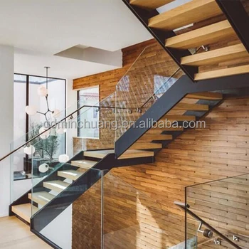China Modern Staircase Design With Floating Timber Steps And Glass