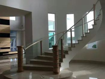 Fashion Design Wooden Curved Staircase With Glass Railing Of