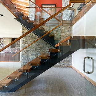 Beautiful Modern Glass Railing For Wooden Staircase With Wooden