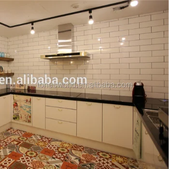Kitchen With White Glass Subway Tiles Backsplash Contemporary