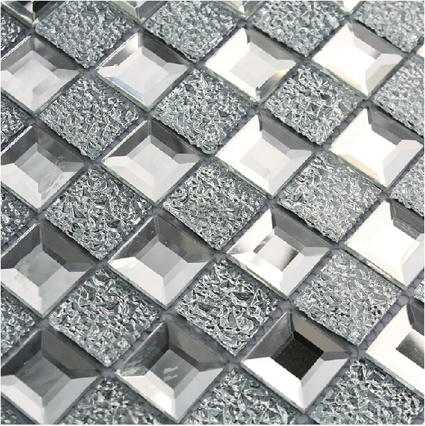 Tst Glass Diamond Tiles Silver Flash Crystal Notch Design Home