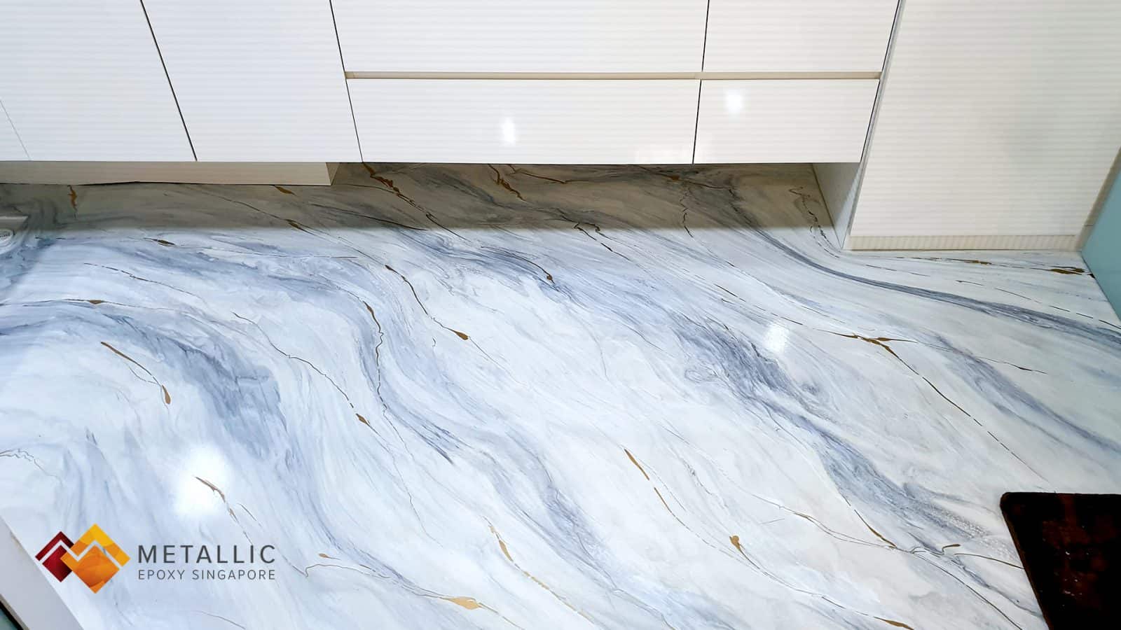 Metallic Epoxy Singapore Grey Silver Gold Marble Bathroom Floor
