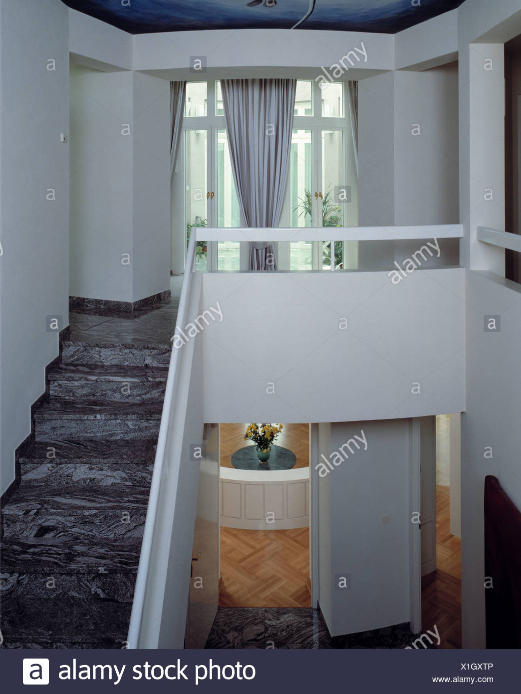 Grey Carpet On Staircase In Modern White Hall And Landing Stock