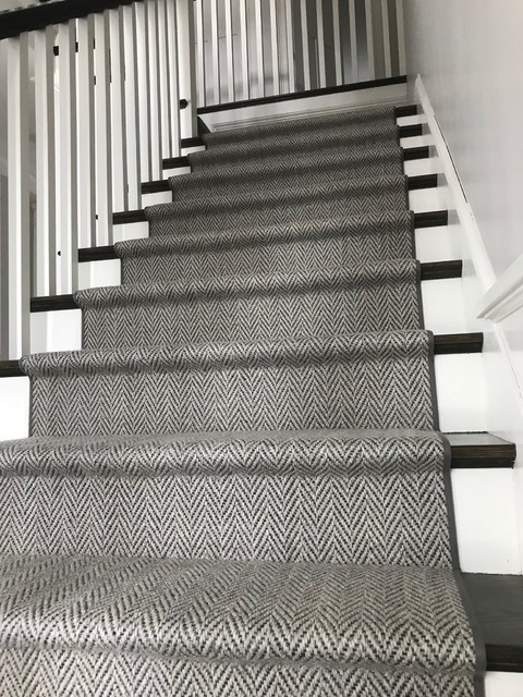Grey Carpet As A Runner To Stairs Contemporary Staircase
