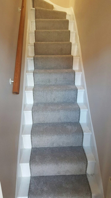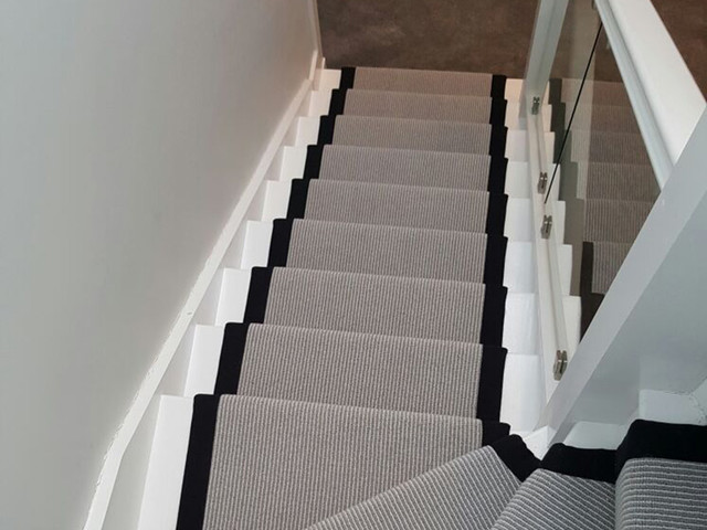 Grey Carpet To Stairs With Black Whipping Contemporary