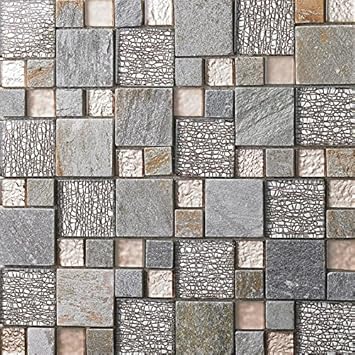 Grey Stone And Glass Mosaic 15x15 Glass Mosaic Tiles From Tile