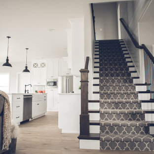 White Staircase With Gray Stair Treads And Railing Transitional