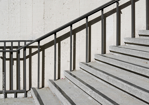 Steel Railing At An Outdoor Stairway With Cement Steps Seen From