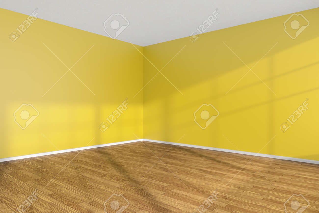 Empty Room Corner With Hardwood Parquet Floor Yellow Walls And