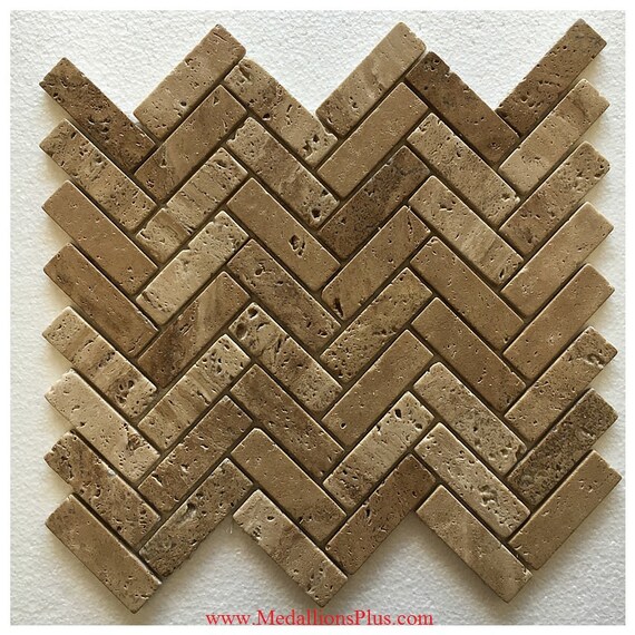 Honed Travertine Herringbone Mosaic Backsplash Tiles Etsy