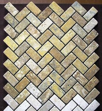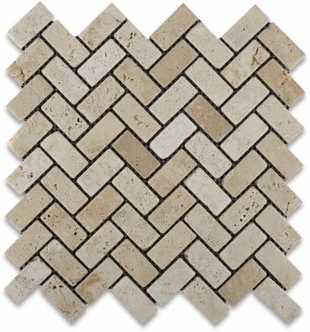 Amazon Com Ivory Travertine Tumbled Herringbone Mosaic Tile 6