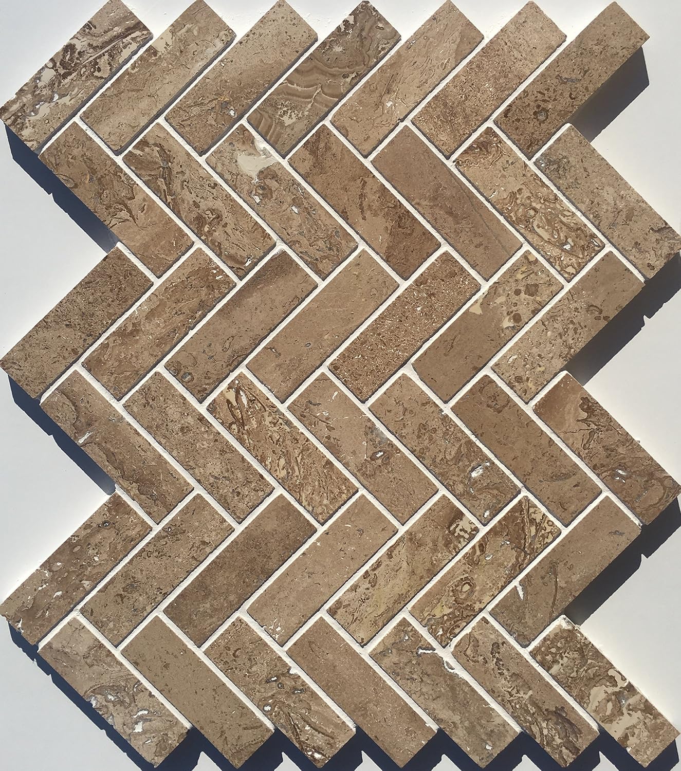 1x2 Travertine Backsplash Herringbone Polished Finish Mosaic Tile