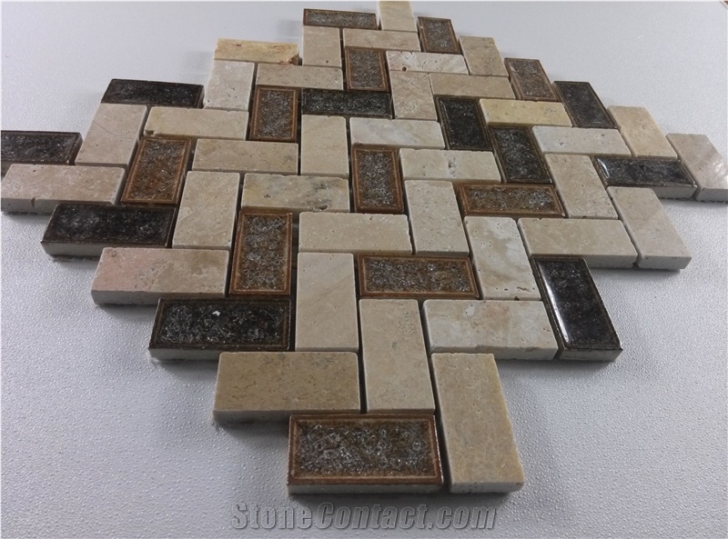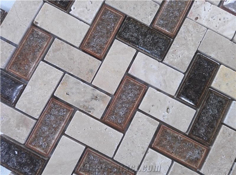 Travertine Mosaic Tiles In Herringbone Pattern From China
