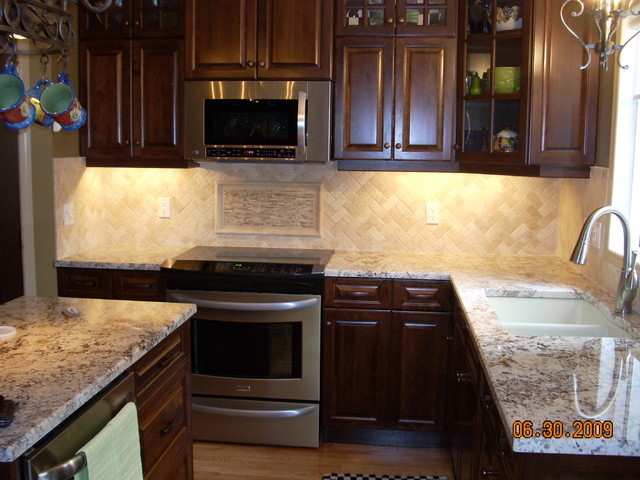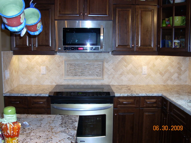 91113 Traditional Kitchen Brown Beige Travertine Tile Backsplash Com