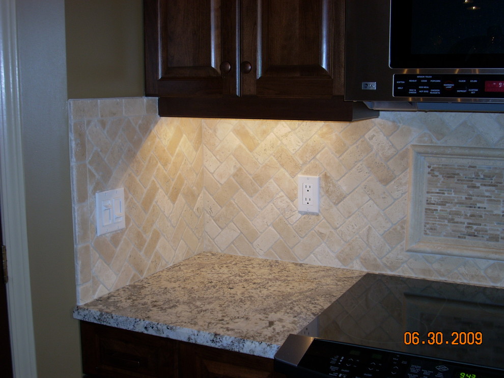 Travertine Backsplash On Herringbone Pattern Hayes Tile And