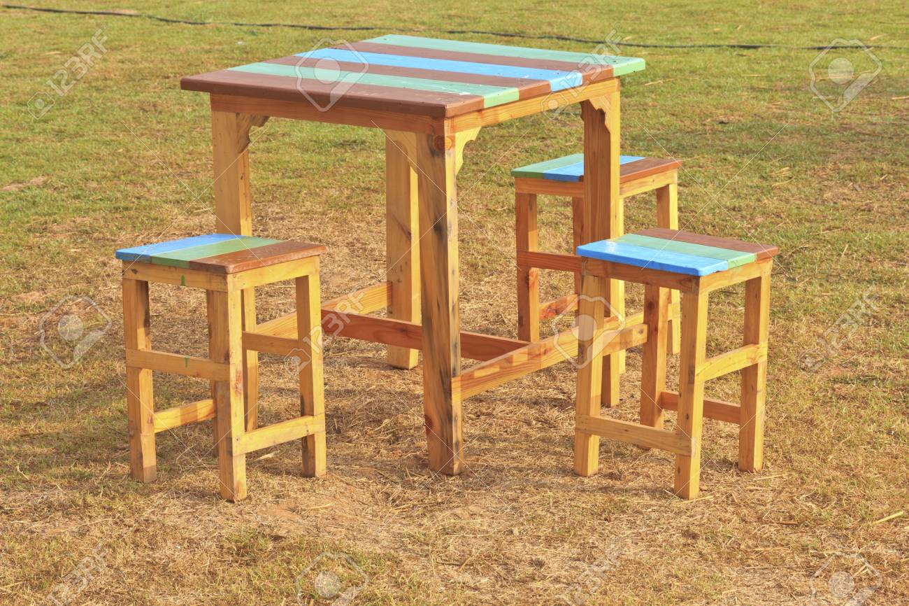 Garten Holztisch Und Stuhlen Lizenzfreie Fotos Bilder Und Stock