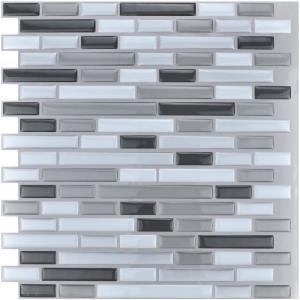 Smart Tiles Subway Fondi 10 95 In W X 9 70 In H Grey Peel And