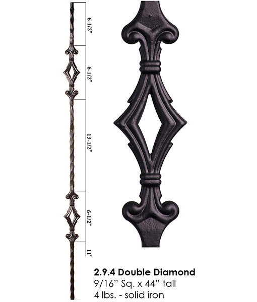 House Of Forgings Ash Grey 16 6 9 Square Double Diamond Hollow 0 5 In X 44 In Iron Baluster For Staircase Remodel Hfag16 6 9 The Home Depot