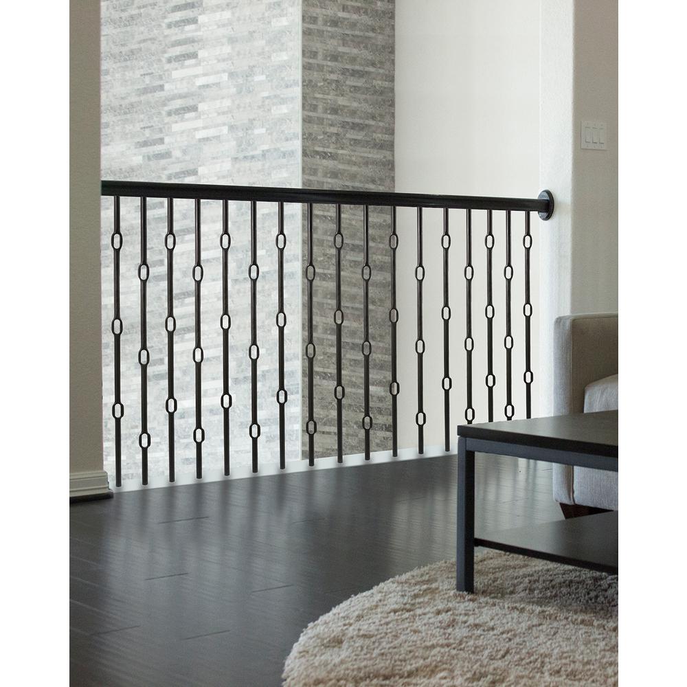 House Of Forgings Designer Round 44 In X 0 625 In Satin Black Single Knuckle Hollow Wrought Iron Baluster Hfstb16 8 2 The Home Depot