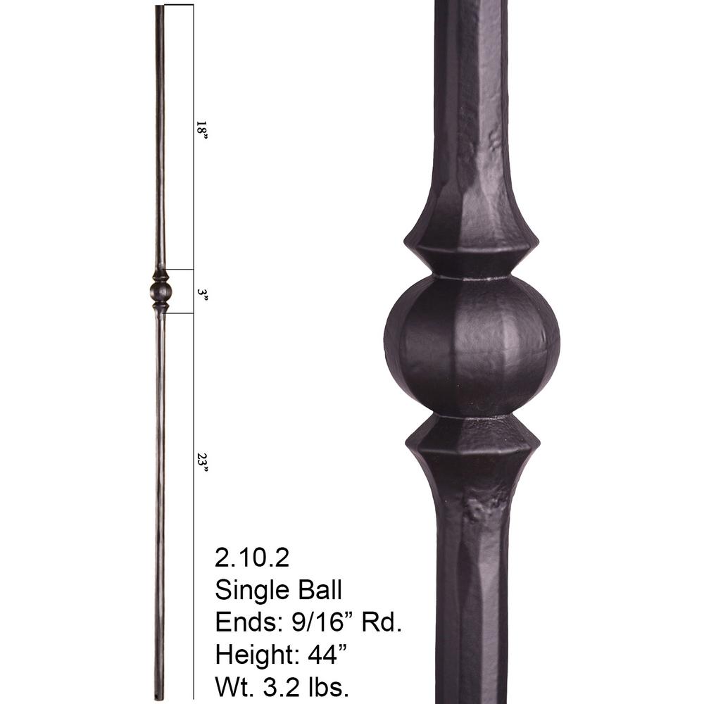 House Of Forgings Tuscan Round Hammered 44 In X 0 5625 In Satin Black Single Sphere Solid Wrought Iron Baluster Hfstb2 10 2 The Home Depot