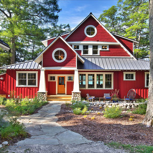Red Roof Grey With White Trim Cabin Red Roof House Tin Roof