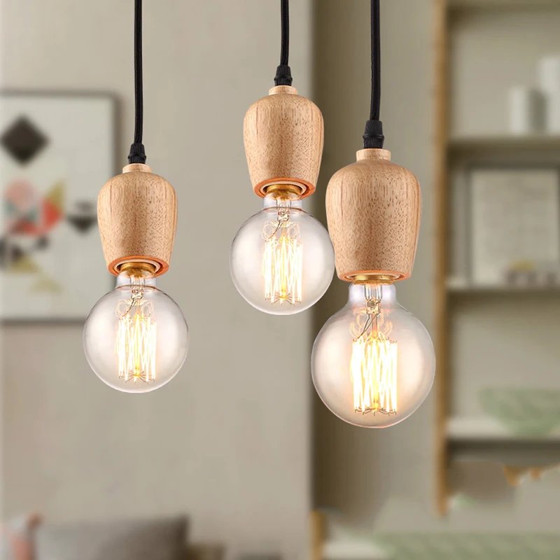 Modern Wood Pendant Lights Home Lighting Electric Cord Hanging