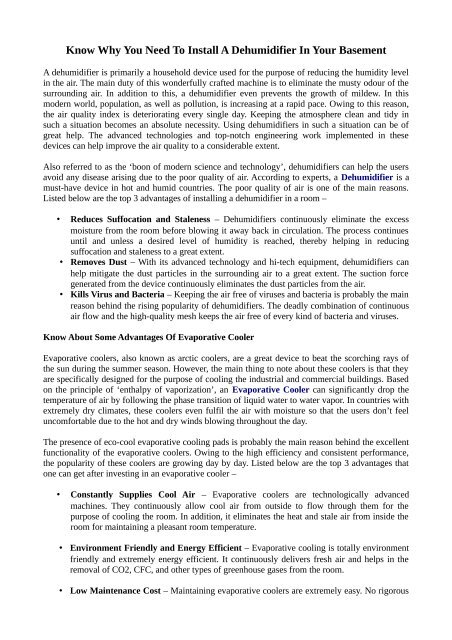 Benefits Of Using A Basement Dehumidifier Hvac Com