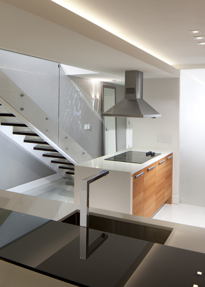 Minimalist White Wooden Kitchen Loft With Stairs Classic