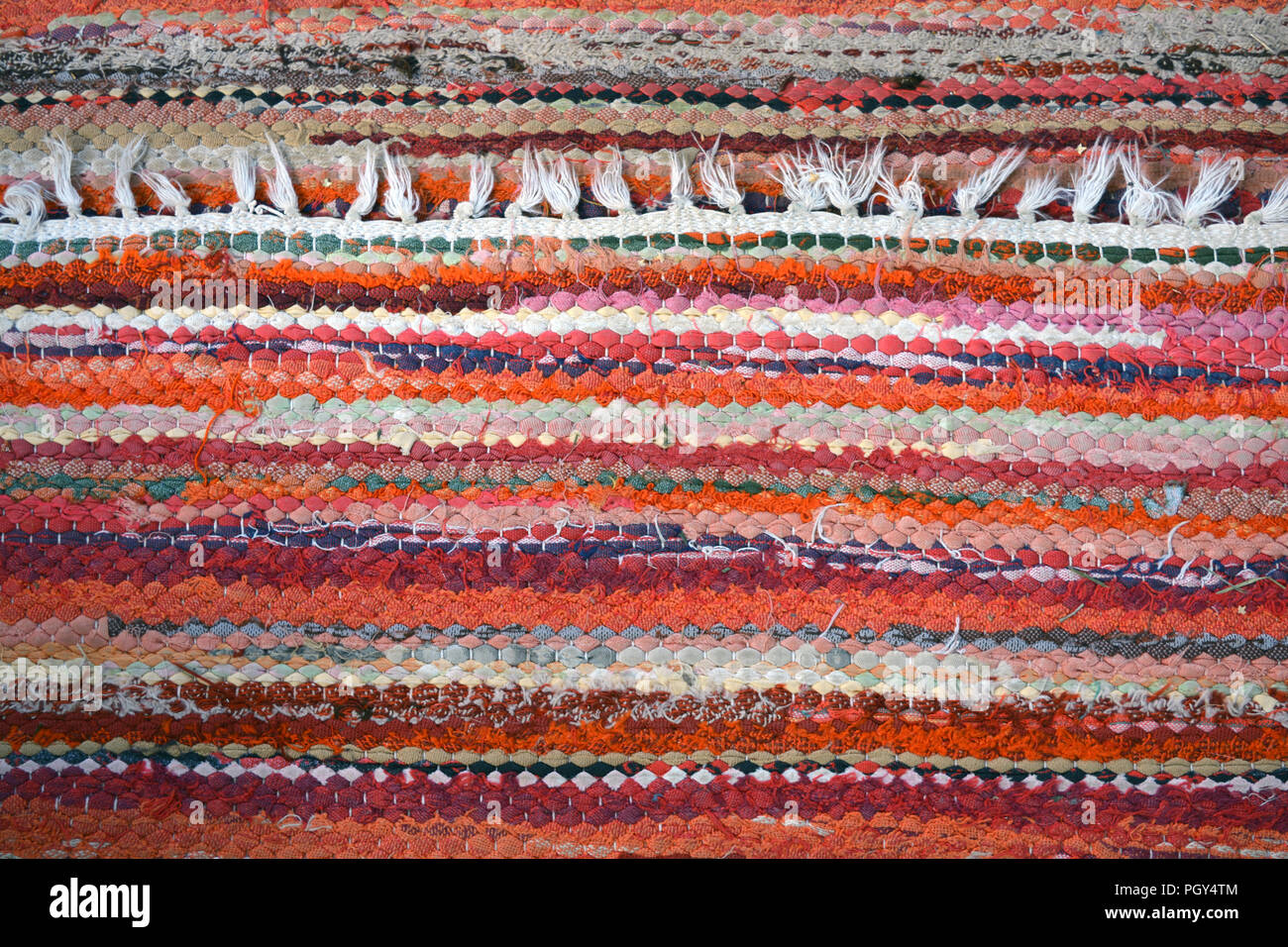 Vintage Used Knitted Handmade Carpet Colorful Background And