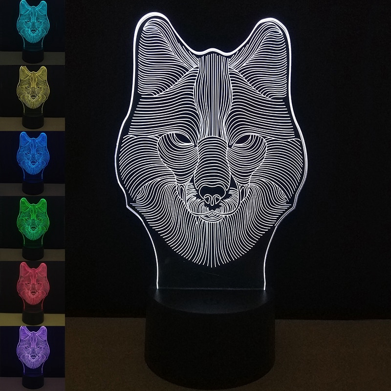 7 Color Wolf Table Lamp 3d Visual Led Night Lights Touch Usb Table