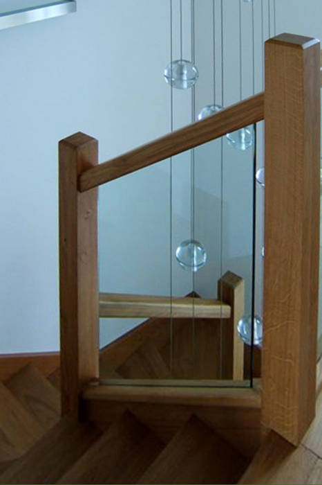 Glass Balustrade With Oak Handrail And Newel Posts Modern Corridor