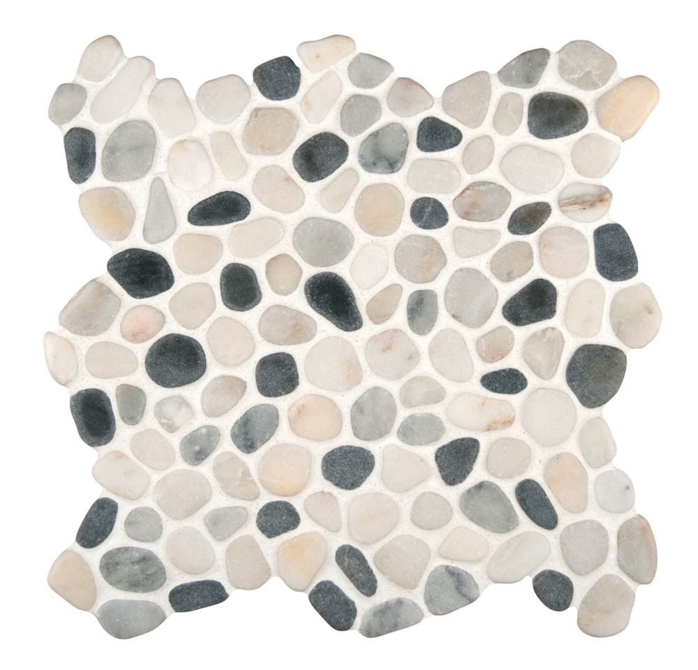 Msi Stone Ulc Black White Pebbles 11 42 Inch X 11 42 Inch X 10 Mm Marble Mesh Mounted Mosa The Home Depot Canada