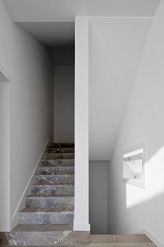 A Narrow Staircase With Marble Stairs Buy Image 715243